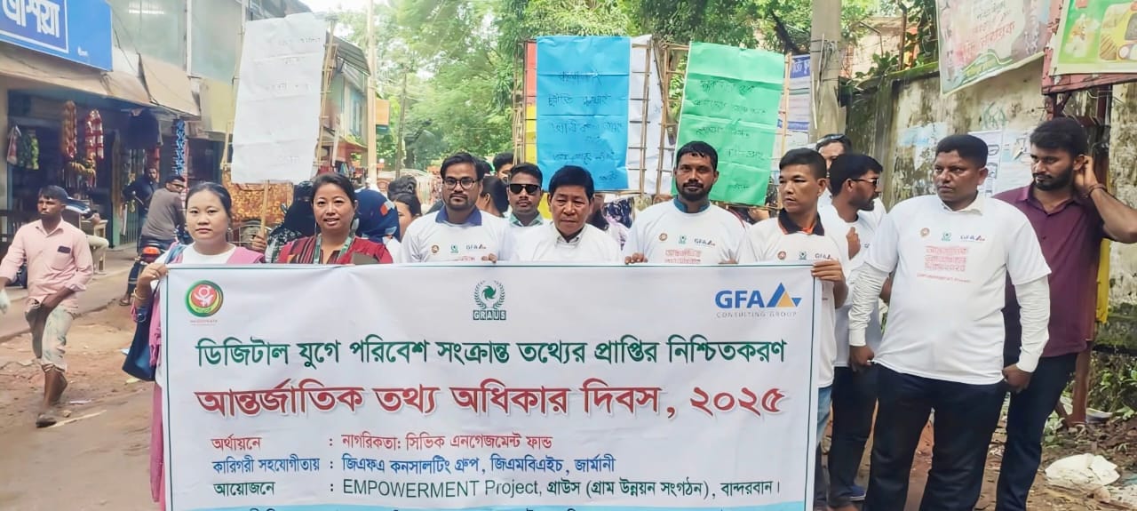 নাইক্ষ্যংছড়ি আন্তর্জাতিক তথ্য অধিকার দিবস উপলক্ষে র্যালি ও আলোচনা সভা অনুষ্ঠিত। তথ্য অফিস, লামা ও গ্রাউসের যৌথ উদ্যোগে "ডিজিটাল যুগে পরিবেশ সংক্রান্ত তথ্যের প্রাপ্তি নিশ্চিতকরণ" প্রতিপাদ্যকে সামনে রেখে নাইক্ষ্যংছড়িতে “ আন্তর্জাতিক তথ্য অধিকার দিবস" উদযাপন উপলক্ষ্যে র্যালি ও র্যালি পরবর্তী আলোচনা সভা অনুষ্ঠিত হয়েছে। রবিবার (২৮ সেপ্টেম্বর) সকাল ১০টায় নাইক্ষ্যংছড়ি বাজার থেকে র্যালি শুরু হয়ে বাজার ঘুরে হাজী ফিরোজা বেগম বেসরকারি নিম্ন মাধ্যমিক বিদ্যালয়ের সামনে শেষ হয়। র্যালি পরবর্তী আন্তর্জাতিক তথ্য অধিকার দিবস ভিত্তিক আলোচনা সভা হাজী ফিরোজা বেগম স্কুলের হলরুমে অনুষ্ঠিত হয়।