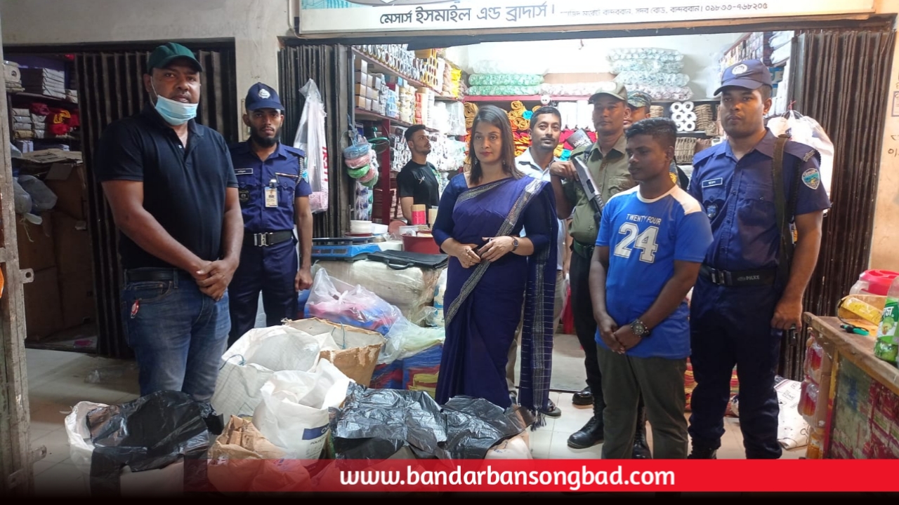 নিষিদ্ধ পলিথিন বন্ধে বান্দরবান বাজারে মোবাইল কোর্ট পরিচালনা