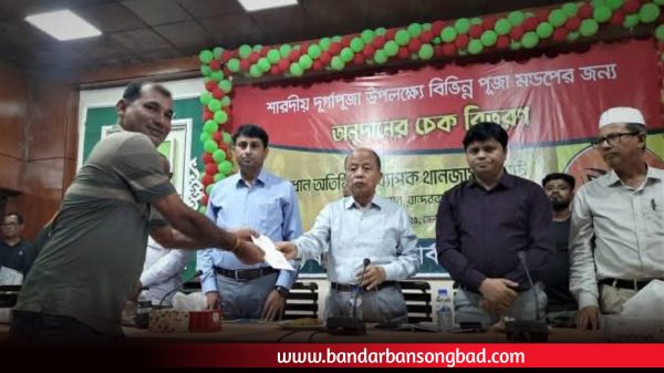 দূর্গা পূজা উৎসব উদযাপন পরিষদের মাঝে বান্দরবান সেনা জোনের উপহার প্রদান